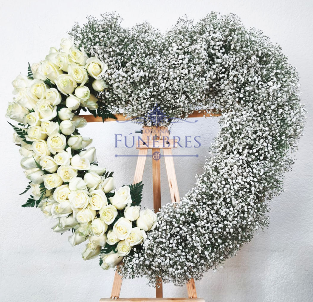 Arreglo fúnebre en forma de corazón, elaborado artesanalmente.