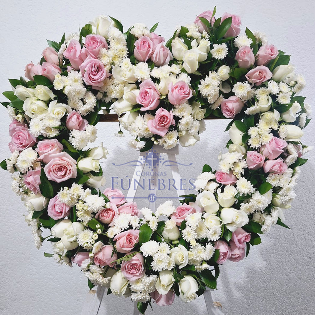 Arreglo fúnebre en forma de corazón, elaborado artesanalmente.